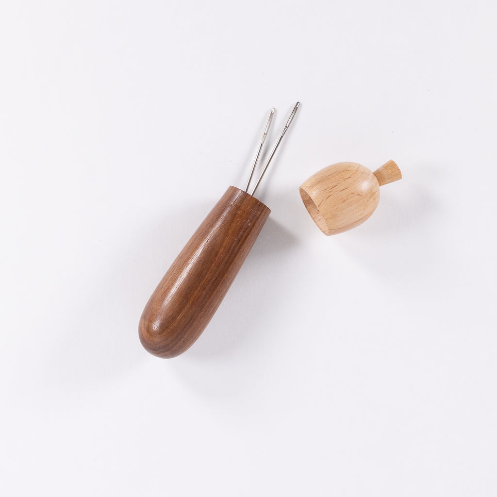 A sweet wooden acorn from Degen to hold needles - comes with 2 tapestry needles.