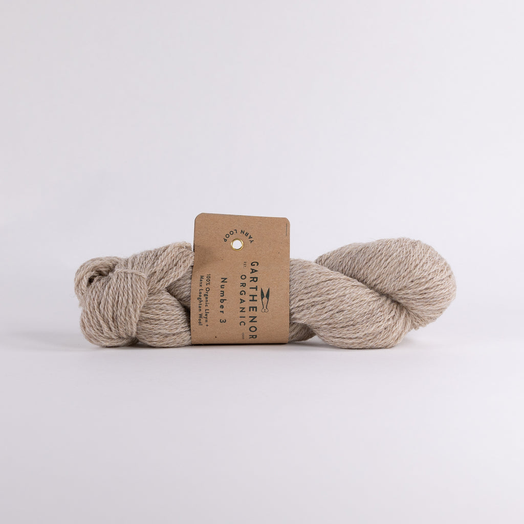 Three ends of Number 1 are gently twisted together to form our DK undyed yarn, Number 3.