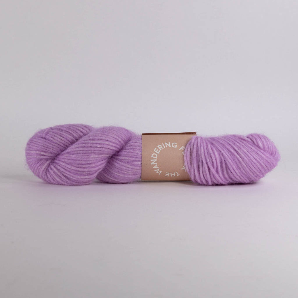 Fluff from The Wandering Flock is the fluffiest cloud-like dream yarn made of Baby Suri and wool blown into a Pima Cotton core! She’s light and airy, but luxuriously soft and fluffy. She may be single ply but her cotton core gives her amazing stitch definition and Baby Suri all the drape you can imagine.