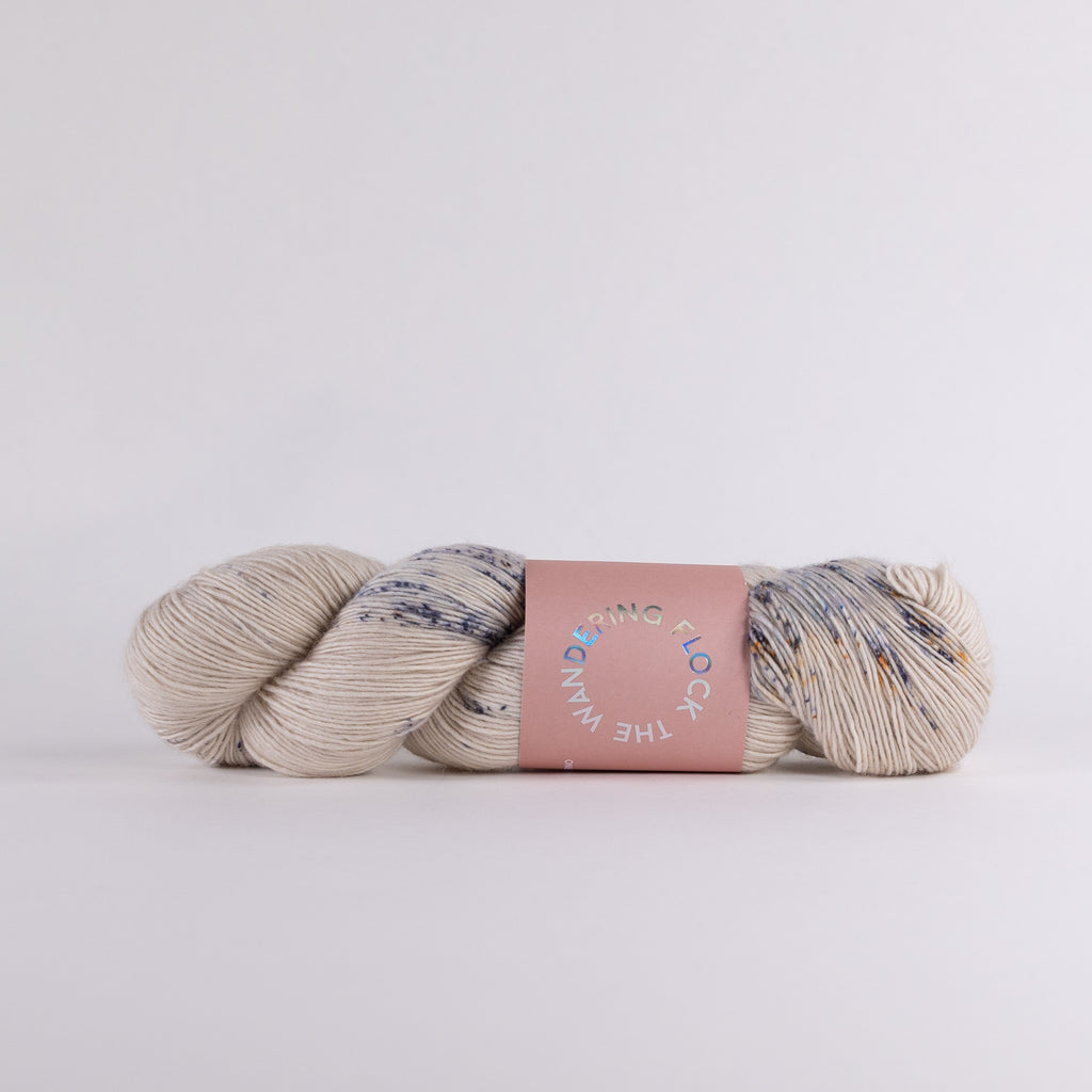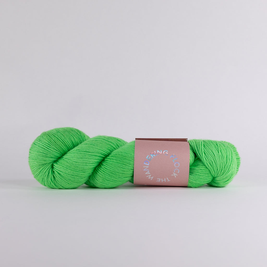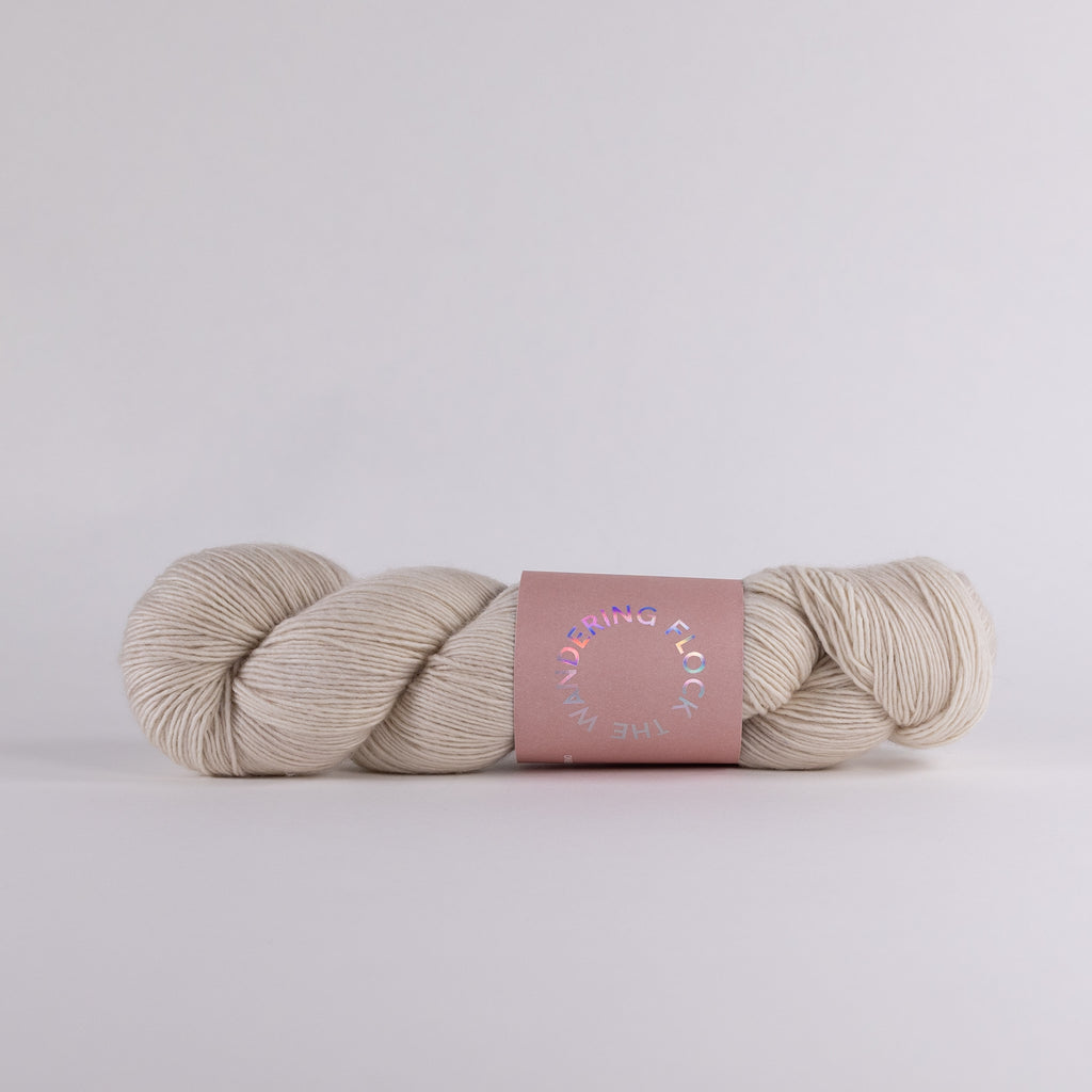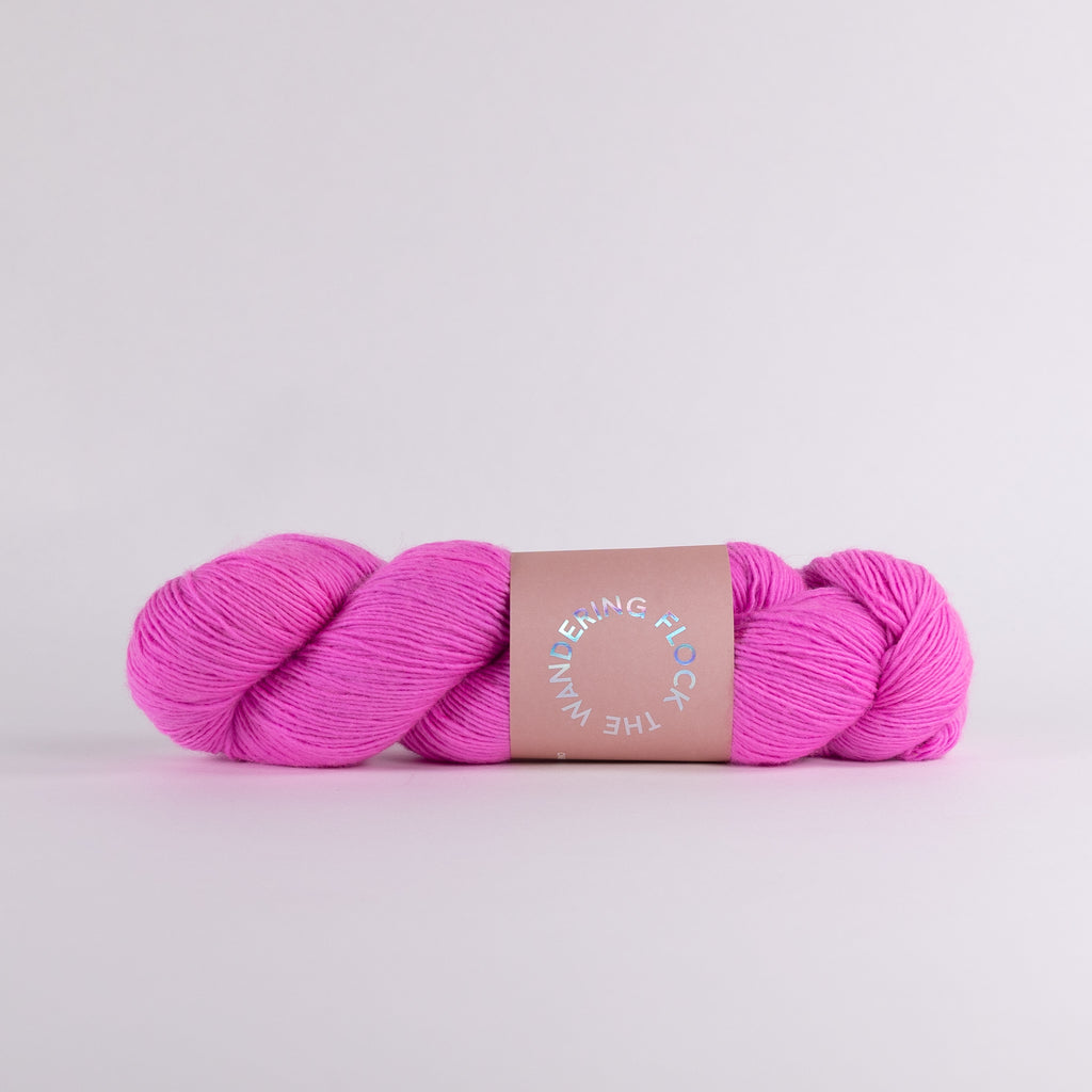 Fingering Singles from Wandering Flock is a smooth single ply with a wonderful sheen that adds dimension and richness to each colorway. After blocking, its full softness blooms.
