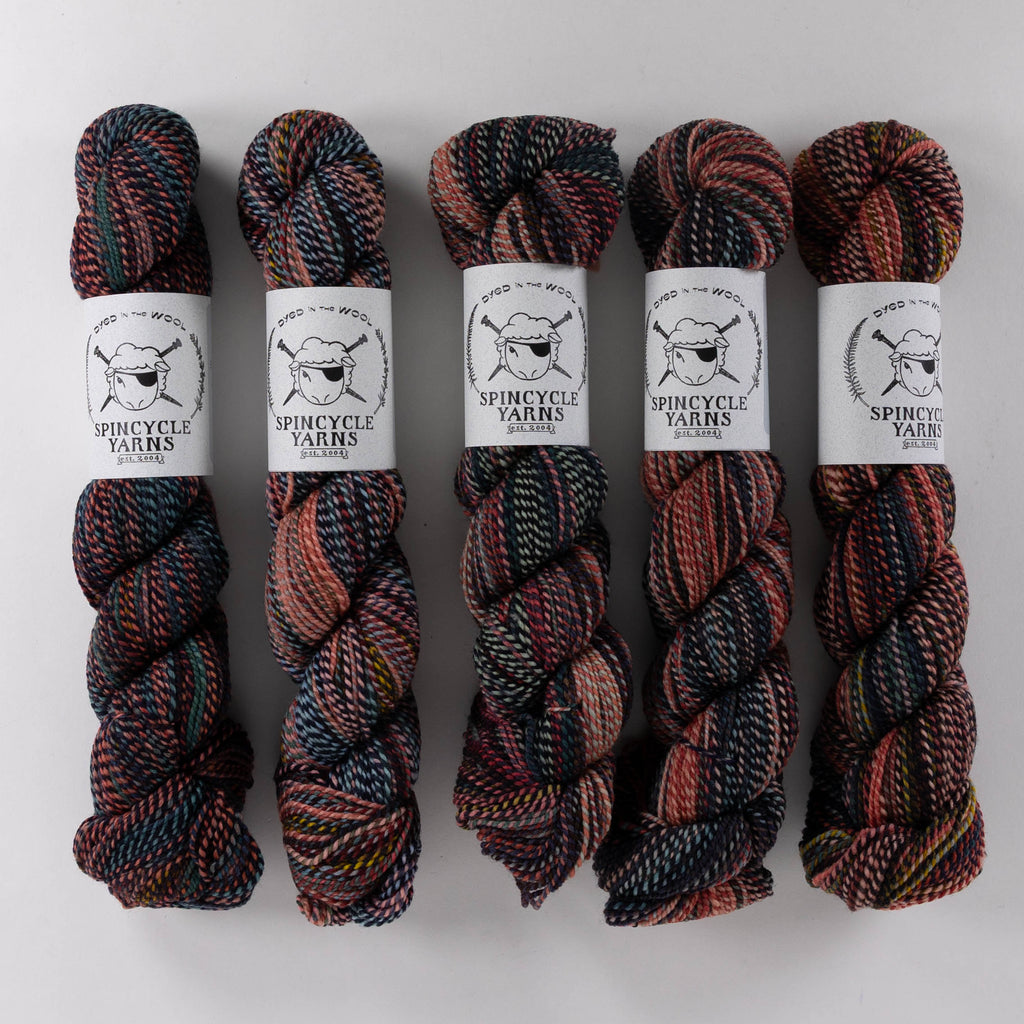 You will receive a skein from this colorway, but not the exact skein pictured. • Due to Spincycle's “dyed in the wool” process, each skein they produce is unique, even within a dyelot. • We recommend buying your entire yardage requirement for your project in the same transaction, so that we can hand select skeins that match. As you can see, there is a wide range of color variation but we will choose skeins that relate to one another within the same order